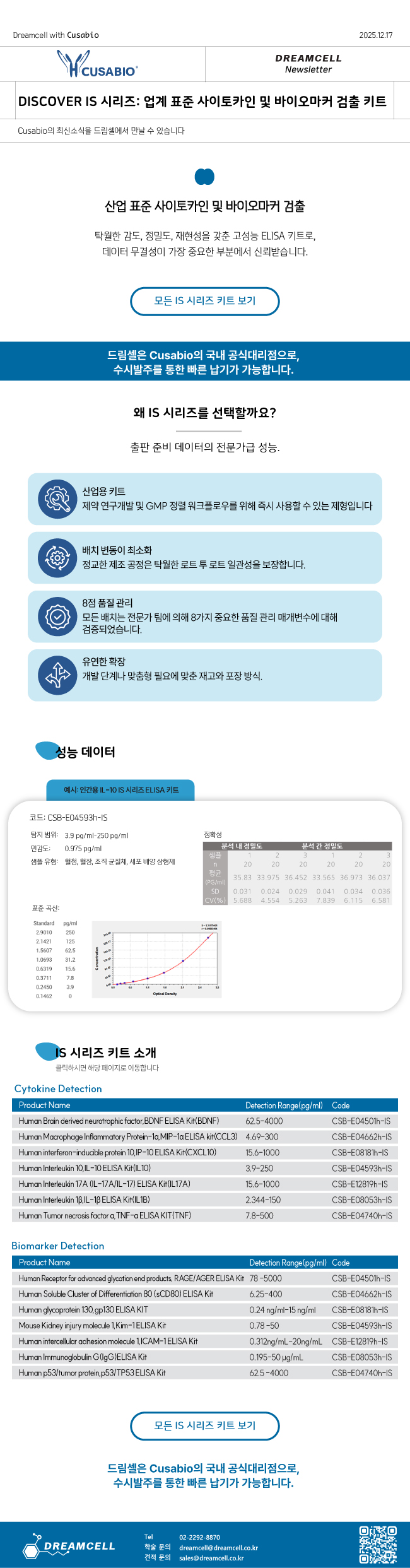 Cusabio 공식대리점 드림셀이 제안하는 Cusabio IS 시리즈 ELISA 키트!