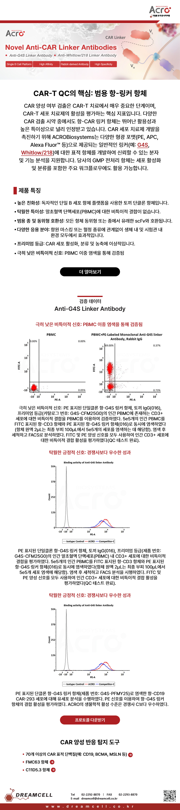 드림셀은 ACROBiosystems의 한국 공식 대리점으로서, G4S 및 Whitlow/218 링커를 정밀하게 추적하는 고성능 항체 포트폴리오를 소개합니다.