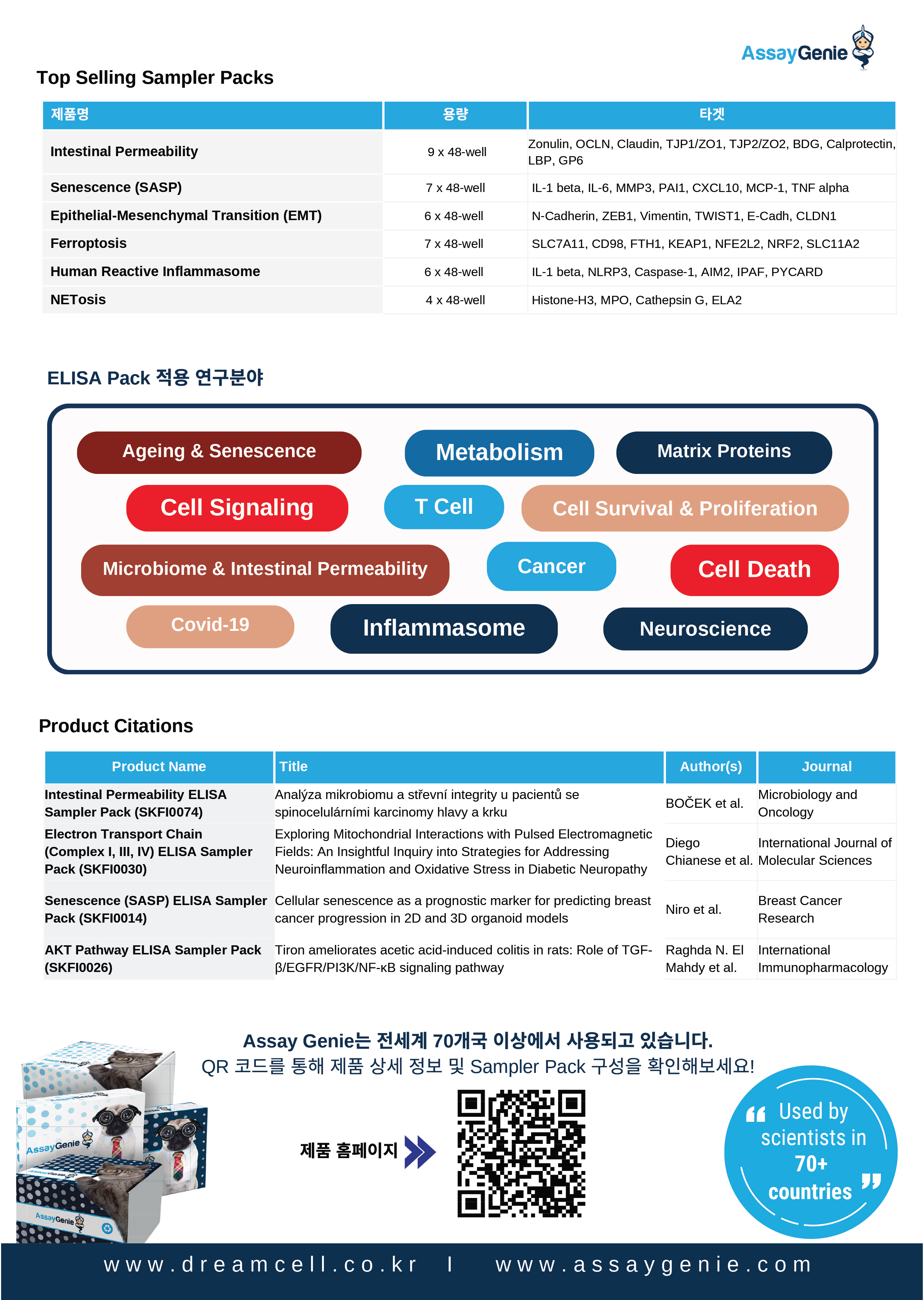 연구 효율을 극대화하고 비용 부담은 줄여드리기 위해, 드림셀에서 AssayGenie ELISA Sampler Pack 20% 할인 프로모션을 준비했습니다.
