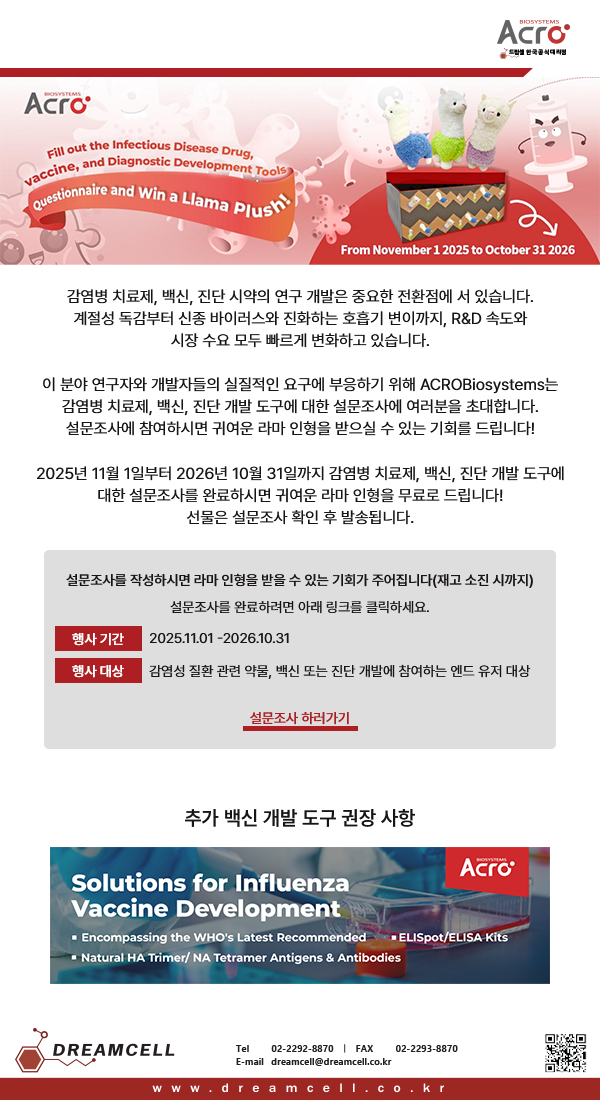 안녕하세요 ACROBiosystems공식대리점 드림셀입니다.