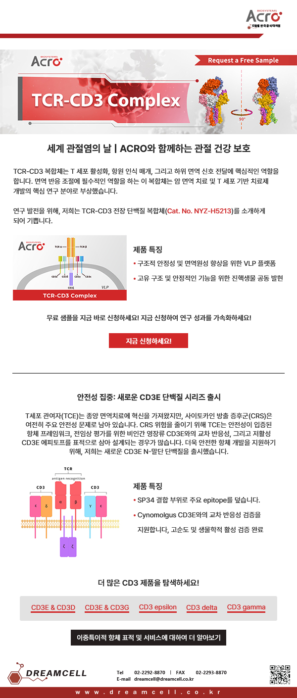 TCR-CD3 복합체 및 신규 CD3E 단백질을 비롯하여, ACROBiosystems의 다양한 면역 연구 제품에 대한 문의는